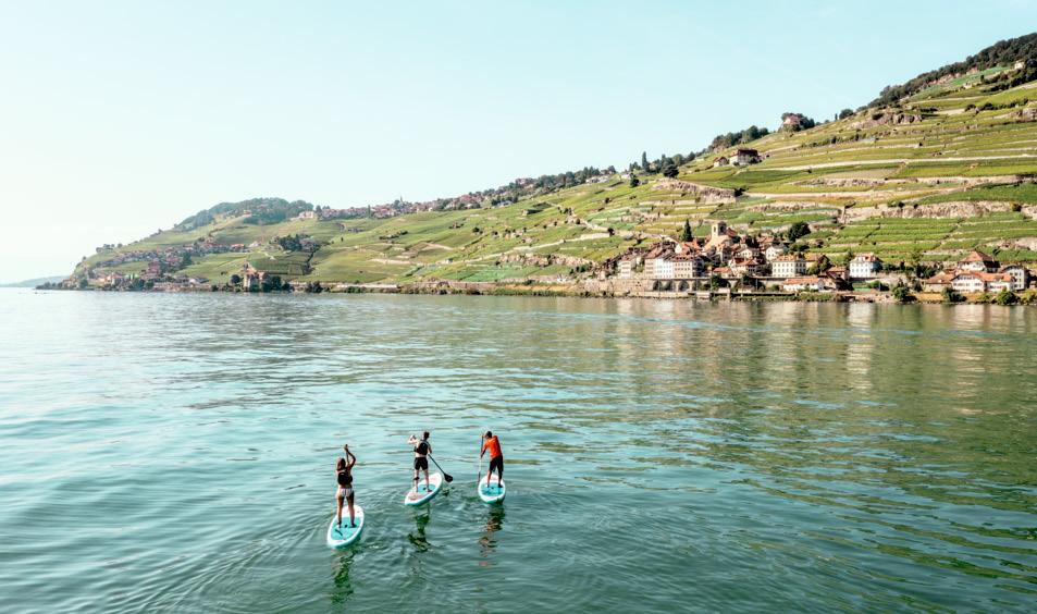 The terraced vineyards of Lavaux can be discovered not only on long hikes and bike tours, but also by water: a stand-up paddleboard tour of Lake Geneva is the perfect combination of sport, fun and enjoyment.