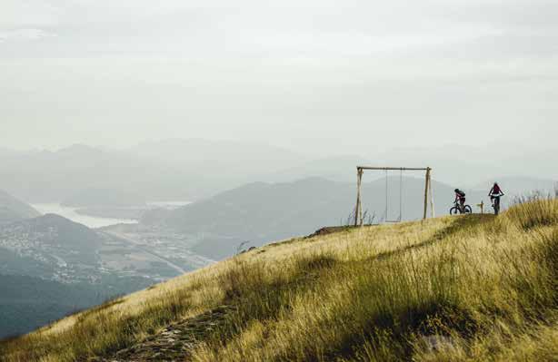 The higher you climb, the more beautiful the panorama – and this should be savoured. So, a quick stop just one turn after Alpe Rompiago is something of a must: the cross towers high at the Motto della Croce viewpoint, adding to the impressive ambience of this power spot. Sit on the swing and watch as the golden sun casts its beautiful rays over Ticino, letting body, mind and soul relax and unwind.