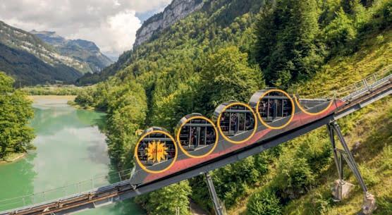 En Suiza, algunas empresas de trenes seleccionadas ya están utilizando la potencia de fuentes de energía sostenibles, aunque algunos barcos también transportan a los pasajeros de forma climáticamente neutra, por ejemplo, en el lago de Lucerna. El uso adecuado de la energía también se está extendiendo cada vez más en los remontes de montaña. Aquí se almacena la energía de frenado, que posteriormente se utiliza para el ascenso.