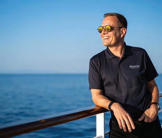 Stepping aboard Star Pride , I instantly sense the serenity that keeps Windstar’s young-at-heart guests returning time and again. Everyone is in a laid-back frame of mind, casually dressed, quietly settling in. Staff members are quick with a smile, some getting hugs from guests who recognize them from a previous sailing. It’s an easygoing yacht vibe, punctuated by proper service and unstuffy fun. And the ship’s small size (only 522 feet long) allows it to duck in and out of ports that larger vessels can’t manage. This particular sailing has the added distinction of being named the President’s Cruise, hosted by Windstar President Christopher Prelog (see sidebar).