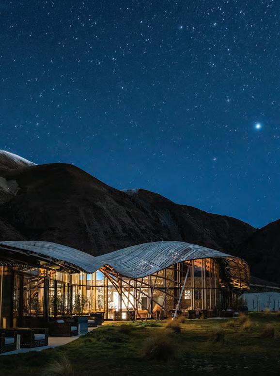 The Ahuriri Valley is a world-class hotspot for trout fishing. It’s also a beautiful, rugged landscape. This remote glacial valley of tussock grass, flanked by two mountain ranges, has vast sheep stations and a conservation park. Blending seamlessly into this landscape is The Lindis. Opened in 2018, the lodge is impressive because of its unique, ultramodern architecture that follows the natural undulations of the valley. The wood panel, bluestone, and sweeping glass design pays homage to its surrounding environment. Unwind in a large suite in the main lodge, or in a mirrored, free-standing pod. In addition to fishing, guests enjoy mountain biking, horse trekking, picnics, special heli adventures, and beautiful hikes on property. Don’t miss the night skies—mother nature’s greatest show on earth!
