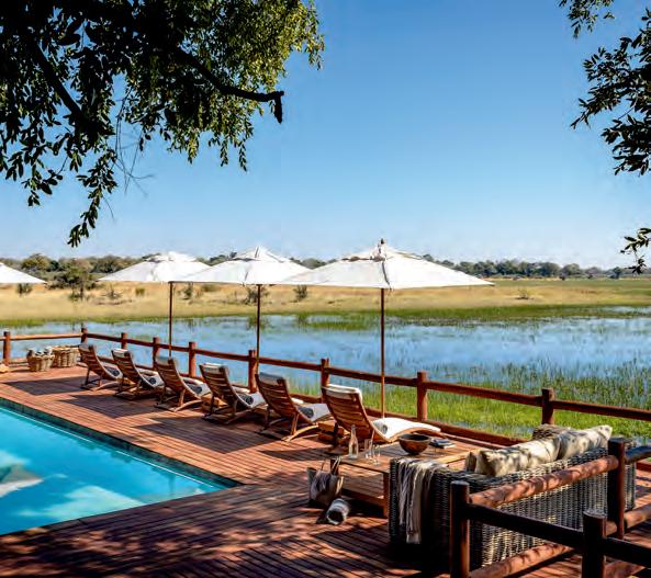> Immerse yourself in the wondrous Okavango Delta and otherworldly Kalahari Desert in Botswana. Jack’s Camp, a legendary tented property in the middle of the Kalahari, is the perfect base to experience the salt pans of the Makgadikgadi Basin and its resident meerkat population. In the Delta, Xigera Safari Lodge features 12 palatial suites and a two-bedroom family suite, all located within a reserve that’s home to leopards, lions, and more. When the annual floodwaters arrive in May, guests can spot wildlife on traditional mokoro outings through the endless channels.