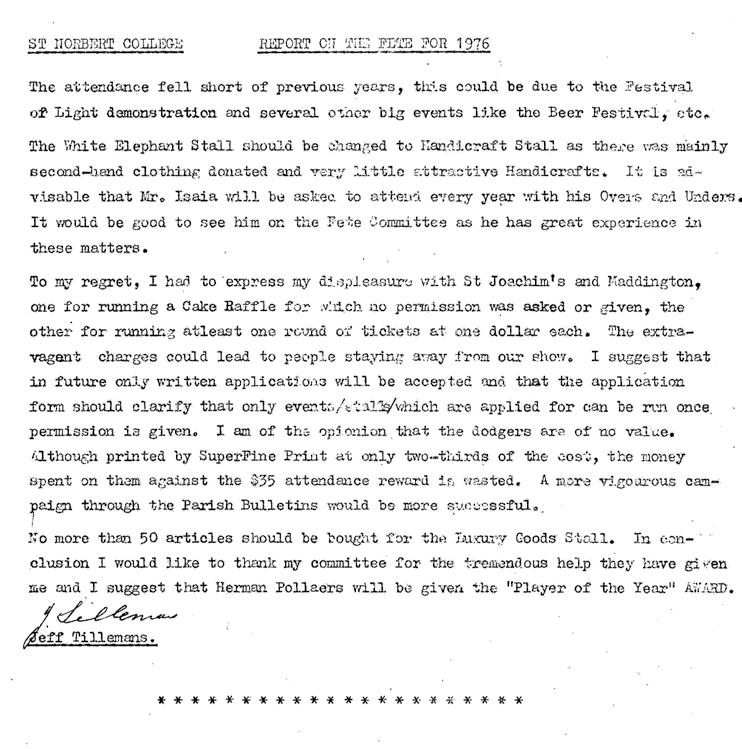 Fr Peter replied that they had always been very careful with their funding. Under every Principal not one of the buildings ever came in over budget. The focus was always about the kids. It was never about having the best of everything; it was about how the dollar could be best spent. He reiterated that St Norbert College stands on the backs of people like Fr Peter O’Reilly, Fr John Reynolds and Fr Stephen Cooney. Others as well. Fr Peter O’Reilly knew how to surround himself with the “right” people. All sorts of people! Fr Peter said sometimes you would look at a group of people Fr Peter O’Reilly had got together, and you would think “How in heaven’s name did that happen?”!