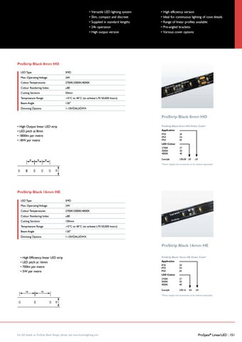 ProStrip Black 16mm HE Order Code* Application IP20 20 IP54 54 IP65 65 LED Colour 2700K 27 3000K 30 4000K 40