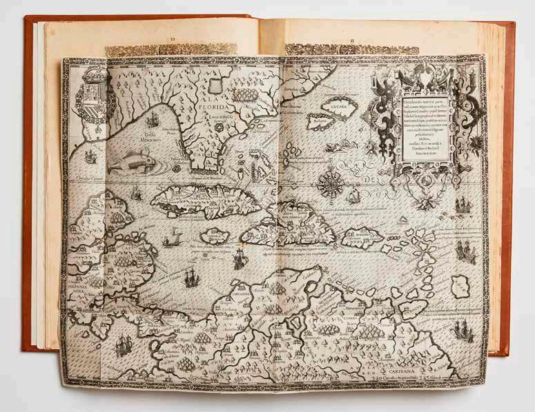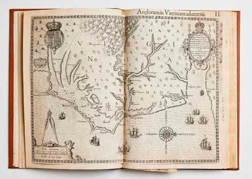 also presents 52 original, folding maps and 578 plates. The ample iconography of Asia, the Petits Voyages, and the Americas, the Grands Voyages, of around 1600 has been copied or inspired much of what has been published on these continents for the next 200 years. The search for the north east passage to Cathay by Barentszoon (1592–1596) and Linschoten (1595 and 1596) and to the NW passage by Hudson (1612) are also fully included.