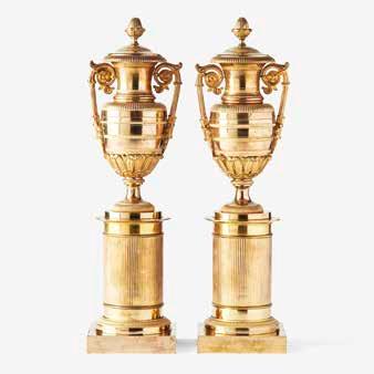 11. Casoletter, ett par, parisarbeten i Restauration, 1800–talets första hälft, matterad och polerad brännförgylld brons.