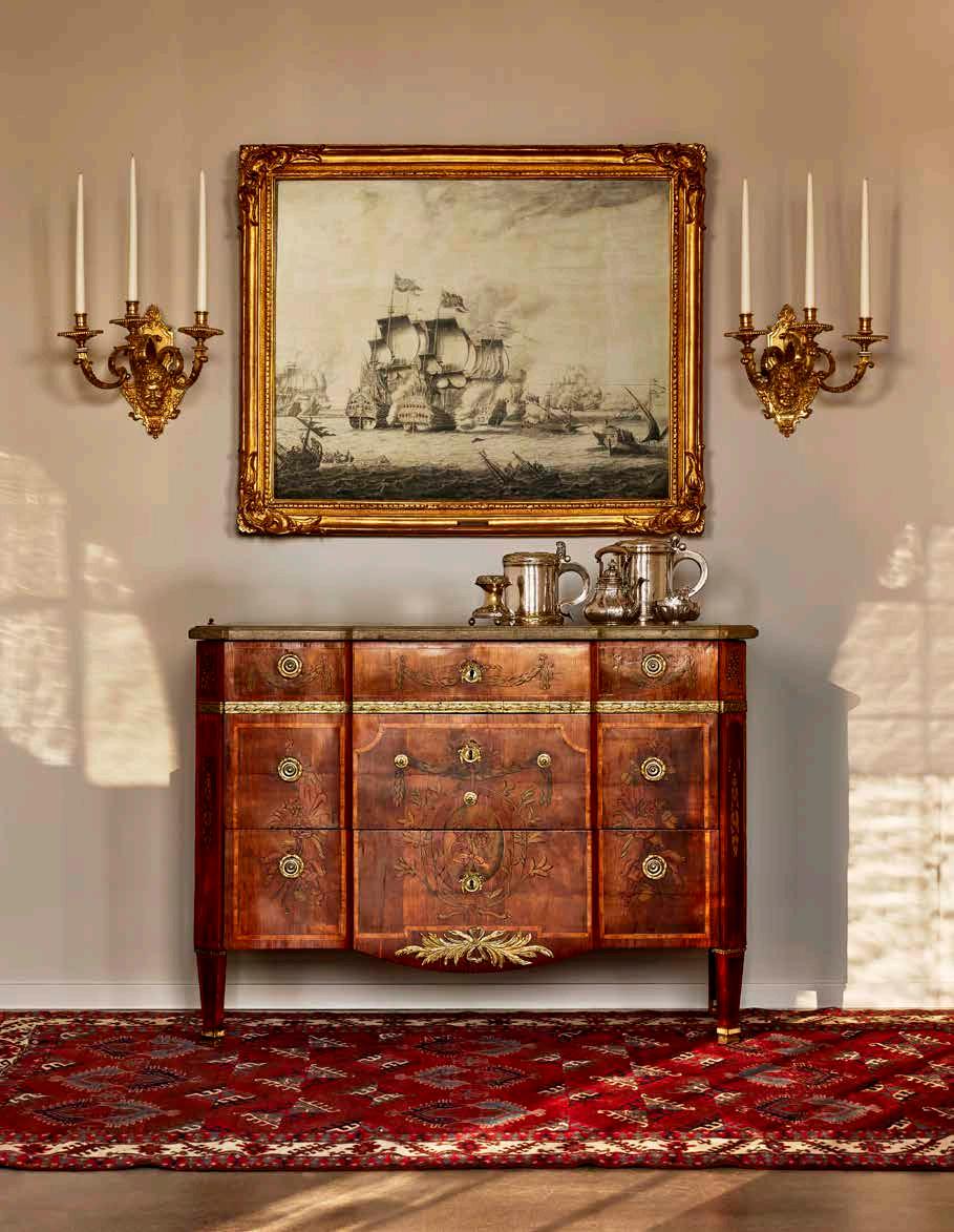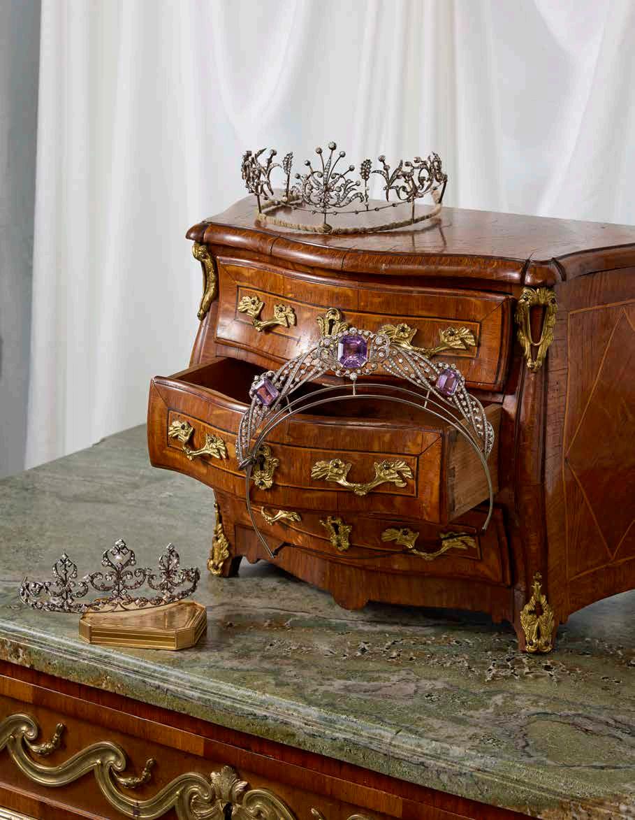 I The Curated Classics & Fine Jewellery Sale möts barocken, gustaviansk harmoni, empire och det sena 1800–talets eleganta nyanser. Tillsammans formar de en berättelse om Europa och Sverige där form, funktion och ideal speglar en omvälvande tid som fortfarande talar till vår. De brännförgyllda mässingsarbetena och de praktfulla silverföremålen och smyckena bär alla spår av en tidlös längtan efter identitet, skönhet och tillhörighet.