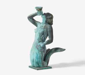 Fyrkantigt bas med palmettbård, postament med emblem av bevingad kvinna samt palmettornament, krönt av stående karyatid bärande loutrophoros med utsvängda ljusarmar krönta av lejonhuvuden, mattpunsade ljuspipor med palmettdekor, höjd 59,5 cm.