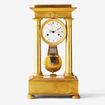 1. Bordspendyl "Pendule au char d’Apollon", högklassigt arbete i empire, 1800–talets första hälft, urtavlan signerad Callerström Stockholm (Johan Erik Callerström, urmakare i Stockholm, erhöll tillstånd 1817, urfabrikör 1825).