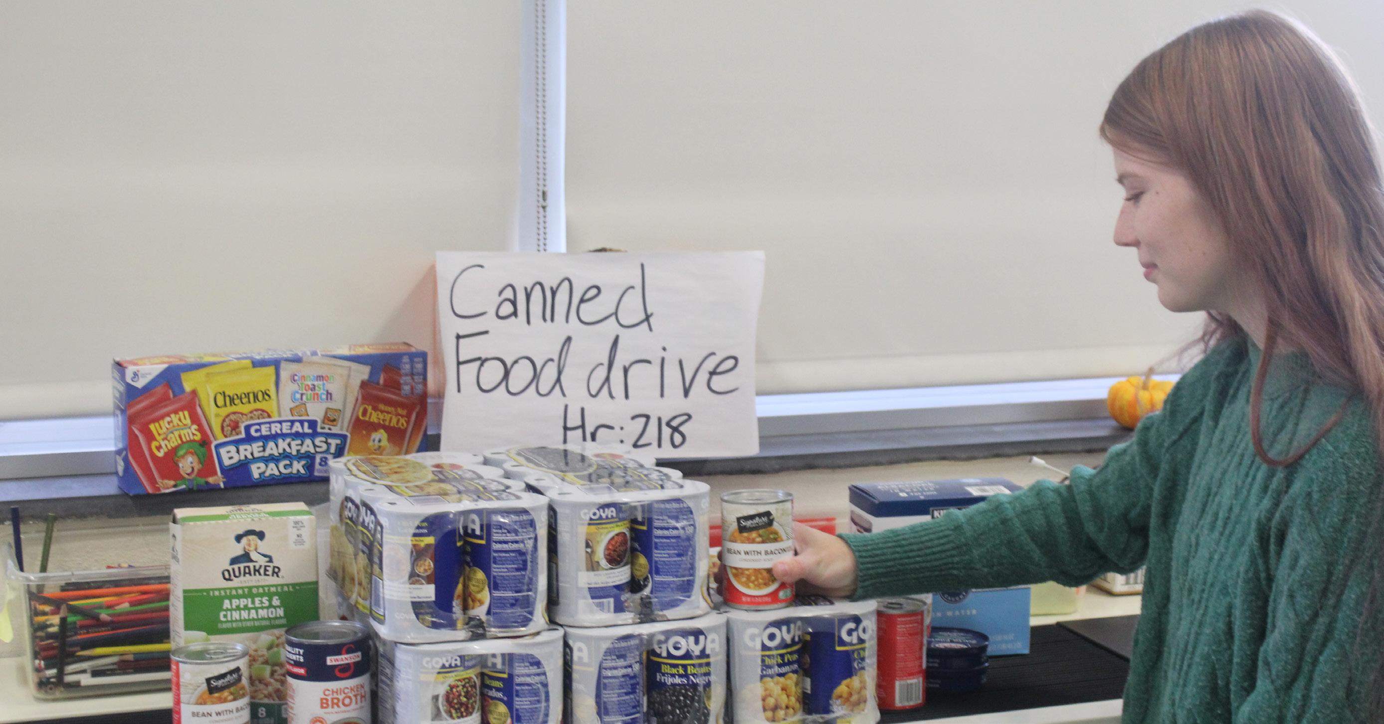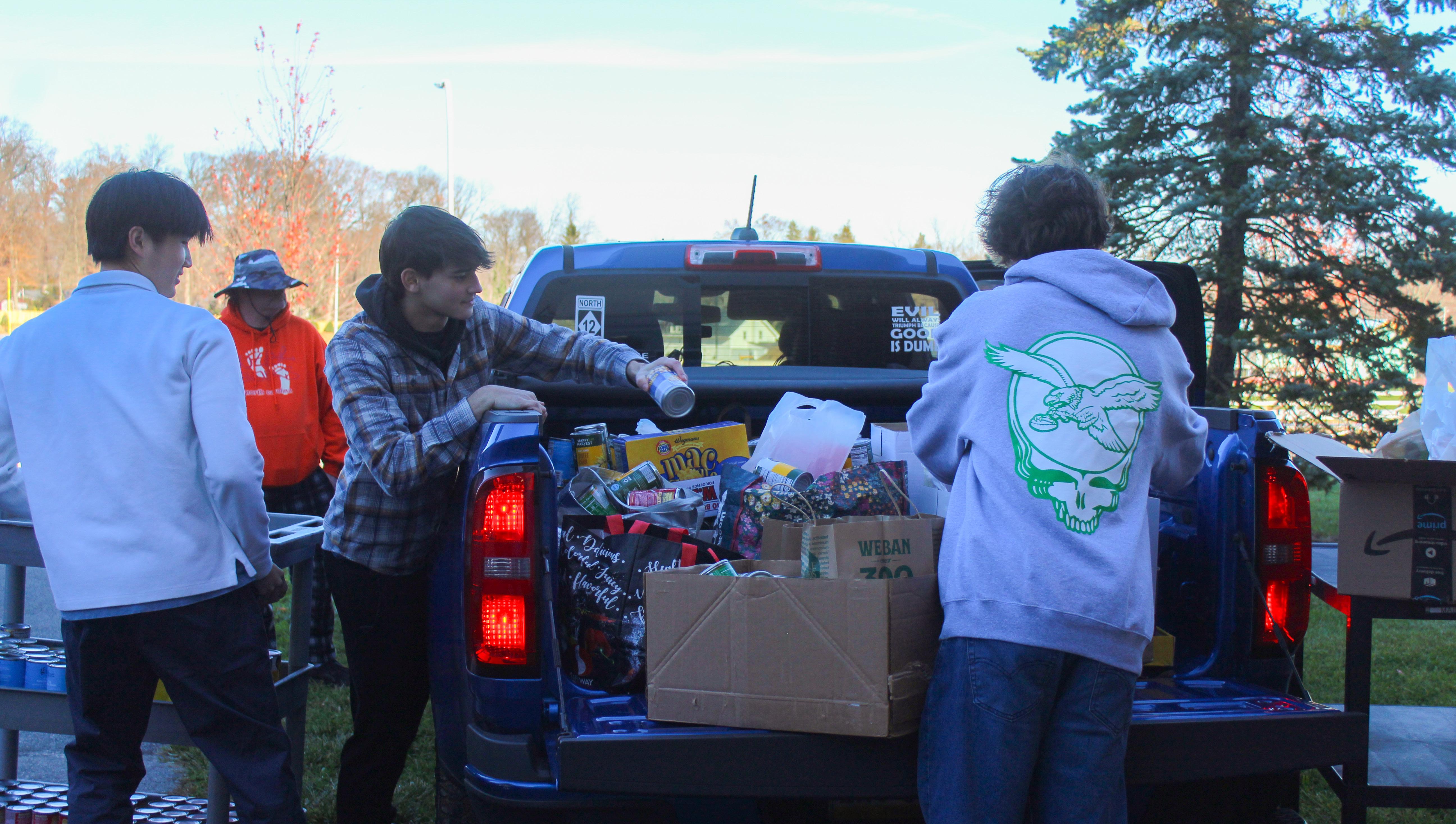 cars with more than 4,000 cans of donations from their annual food drive. This year’s collection, along with various other