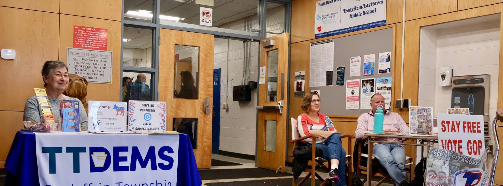 poll books arrived to precincts. The county then announced judicial approval to extend voting hours from 8 p.m. to 10 p.m. Elizabeth Luminais is the Judge of Elections at polling place 618, which is located at TEMS. She oversaw the polling place’s voting process and guided third-party voters.