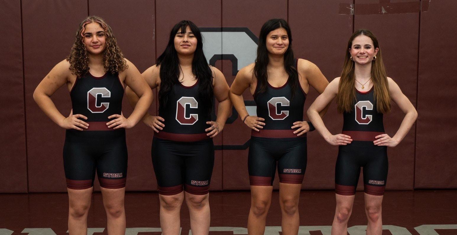 Ready to go: The female members of the Conestoga wrestling team pose for a group picture. This year, they have been working to create a team and have been advertising by holding meetings and posting flyers. In the future, they hope to grow the team to wrestle against female wrestlers from other schools.