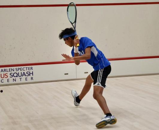 Deep in focus: Junior and squash player Neil Srivastava rallies with an opponent at the Arlen Specter Squash Center in Philadelphia. He has competed in squash for
