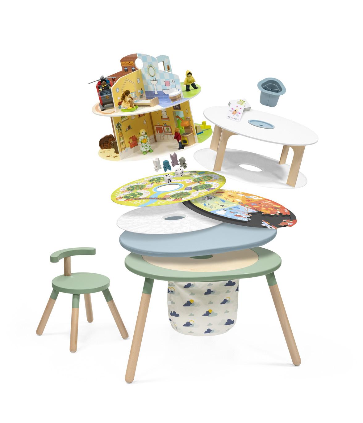 • 想像力をかきたてる遊びを通じて、楽しみながら学ぶことができるプレイテーブル • 3枚の両面ボードで遊び方は無限大