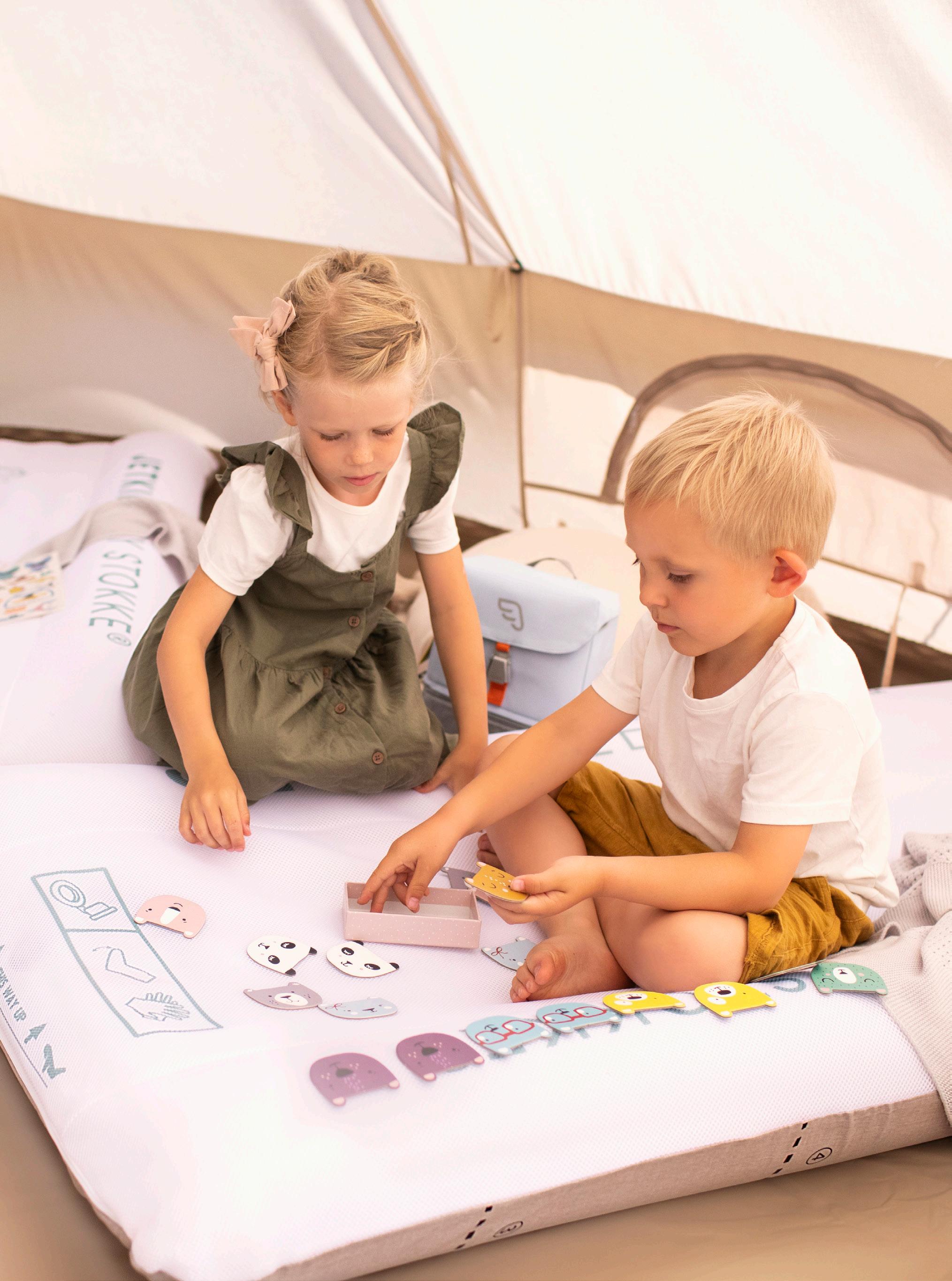 • 子ども用スーツケースと、機内や列車の座席をフラットにできるベッドセットがひとつに • 付属のマットレスは洗濯可能 • ほぼすべての飛行機に持ち込み可能
