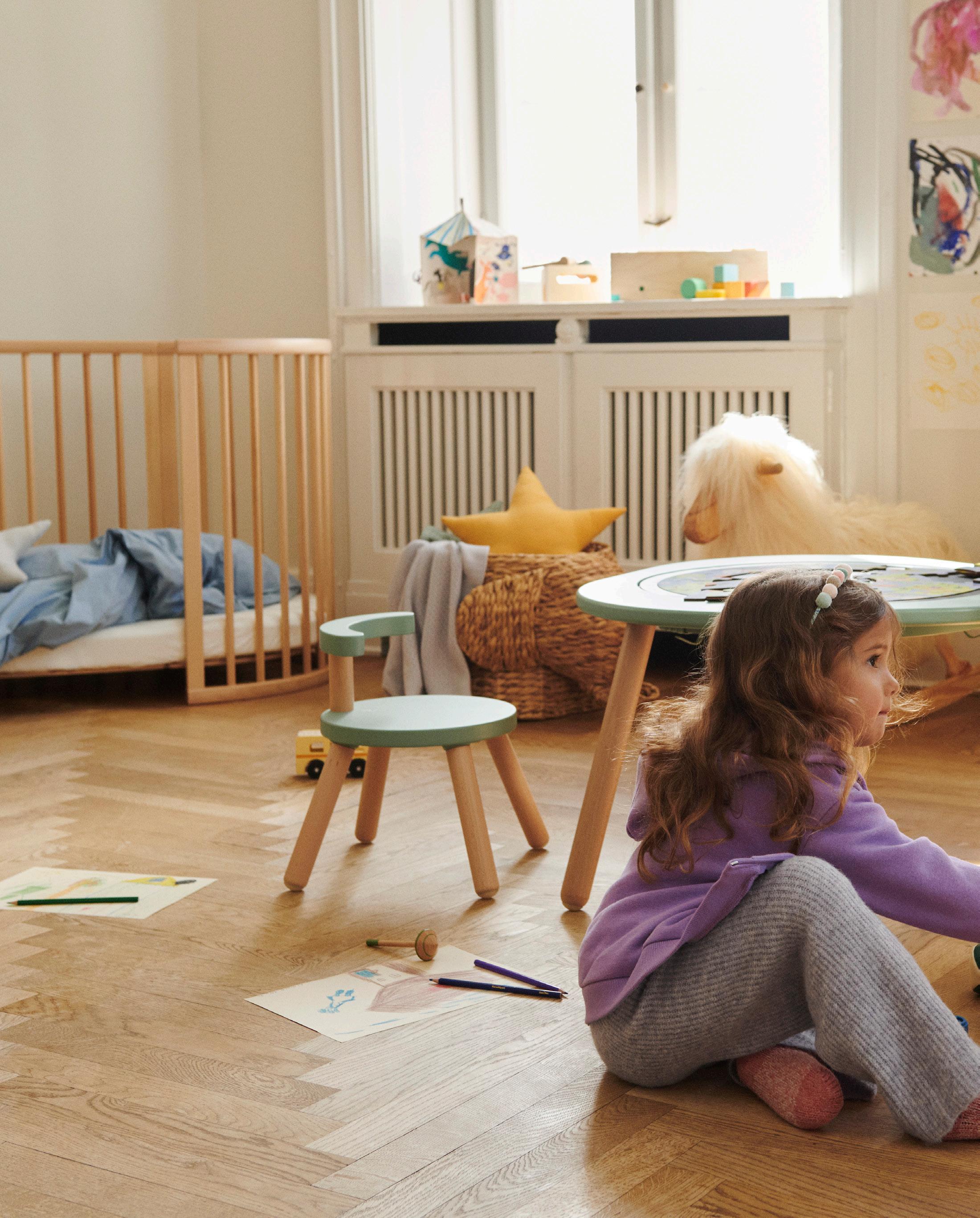そして、子どもたちの1日が始まり、たくさんの出来事 を経験した後で静かに1日を終える場所でもあります。 一方で、本を読んだり、歌ったり、遊んだり、新しい 何かとつながったりーーそんな日々の学びを重ねる場 所でもある子ども部屋には、親と子が安全かつ心地良 く居られるような専用の製品が必要です。おむつを替 えるときも、絵本を読み聞かせるときも、親子で一緒 に過ごすひとときにも。どんな時間も快適に演出して くれるのが、ストッケのナーサリー製品です。