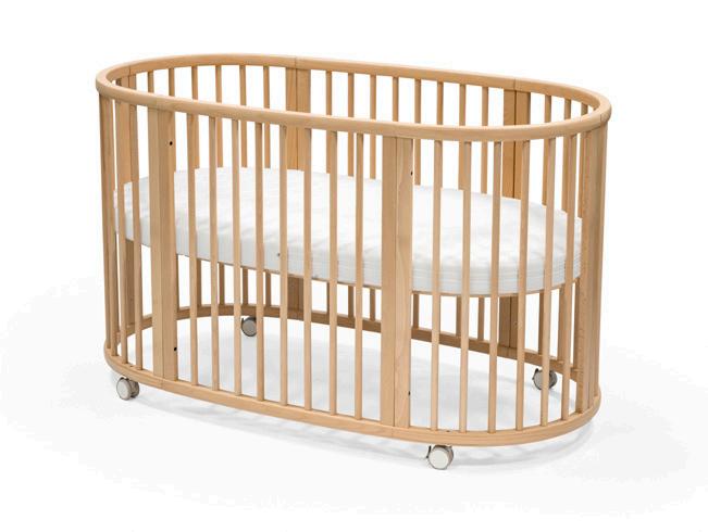 • ママのおなかの中のような、とがったところがひとつもないデザインで安心のベビーベッド • 0〜5歳頃の子どもの成長に合わせてベッドも成長 • ロック機能があるキャスターつき。ベッドごと移動でき、寝室でもリビングでも、いつでもそばで見守れる