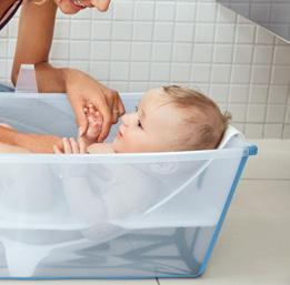 • A lightweight, portable baby bathtub that folds flat • The bathtub has a non-slip base and a heat sensitive plug for safety
