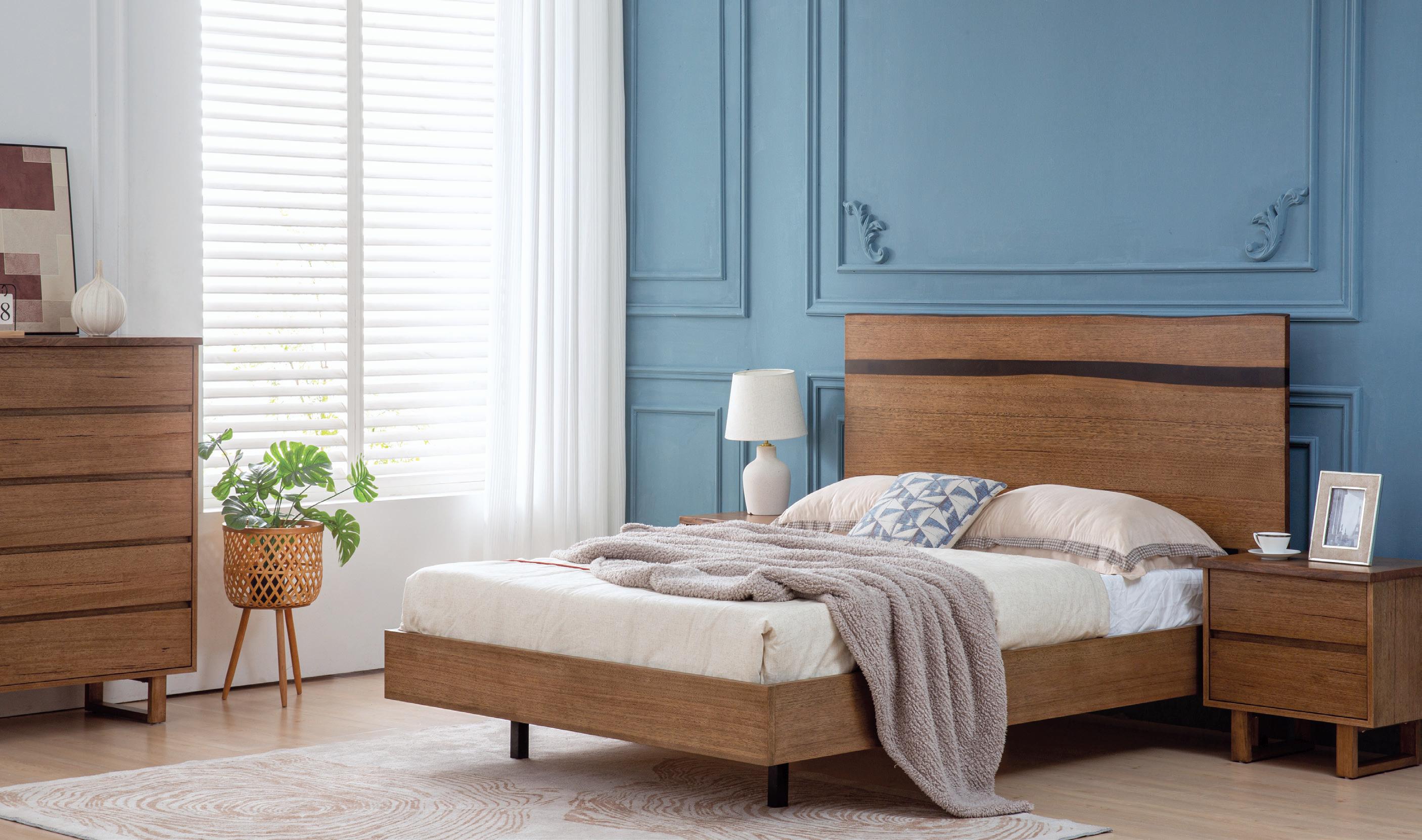CAPRI QUEEN BED FRAME Live Edge Messmate. A A B B ROCKDALE QUEEN BED FRAME Live Edge Messmate in smoke finish. EXCLUSIVE TO 14 $1099 A. 2 DRAWER BEDSIDE $399 B. 5 DRAWER TALLBOY $999 Also available: DOUBLE BED FRAME $1099 KING BED FRAME $1299 DRESSER $1199 $999 A. BEDSIDE $399 B. TALLBOY $999 Also available: KING BED FRAME $1199 DRESSER $1199 MIRROR $199
