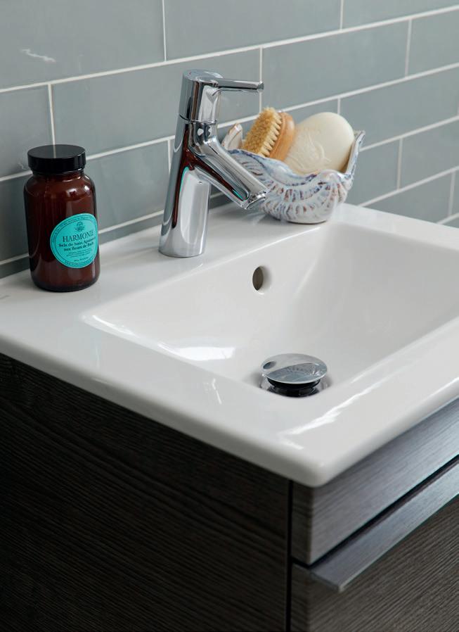 • Wall mounted basin with contemporary Hansgrohe single lever basin mixer