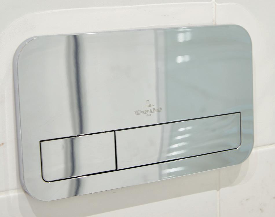• Villeroy & Boch back-to-wall WC, soft-closing seat and cover, and chrome dual-flush plate