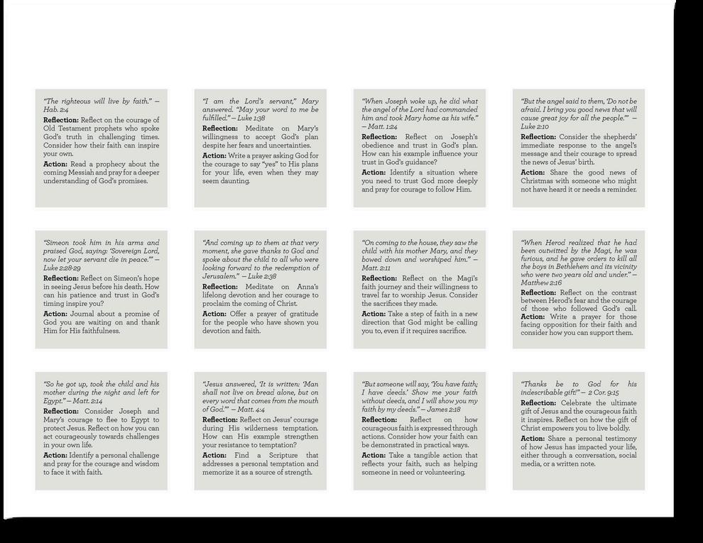 Each day will invite you to consider how you might reflect the courage of Jesus to enter our world, as demonstrated through the Christmas Story.