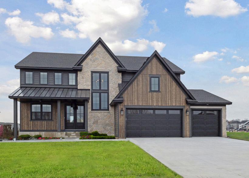 Discover the epitome of modern living with our award-winning North collection Carson D home plan, designed for convenience and style. The main level features a stunning kitchen adorned with a green island, complemented by sleek black matte hardware that makes a bold statement in every room. The kitchen also includes a walk-in pantry and seamlessly overlooks the inviting dinette. Large windows and a cozy fireplace enhance the great room, while a flex room, powder bath, and mudroom round out this thoughtfully designed space.