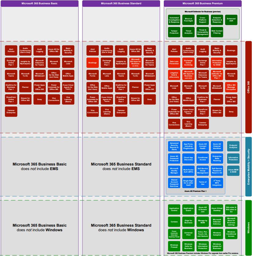 Line of Business Microsoft, Google or Both M365 Business Basic M365 Business Standard M365 Business Premium Office365 E1 Office365 E3 EMS E3 Azure Active Directory Plan 1 Intune