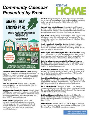 Market Day at Encino Park – Saturday, Oct. 5, 9 a.m. – 5 p.m. Encino Park Women’s Club fundraiser features 65+ vendors, food trucks, seasonal décor, and handcrafted items. Encino Park Community Center, 1923 Encino Rio 78259; EPMarketdays@gmail.com.