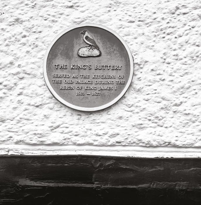 Look for two prominent halfchimneys jutting into the footpath, these mark the centre of King James’ Palace, his grand hunting lodge.