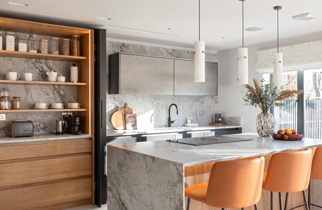 Gathering spaces sit at the heart of every home. One recent project saw a family wanting their kitchen to become the true social hub, a place for cooking, chatting, homework, and celebration. A generous island now sits at its centre, allowing everyone to come together naturally. Bar seating invites guests to relax while the chef of the family works their magic, and layered lighting helps the space shift effortlessly from bright and practical to warm and atmospheric.