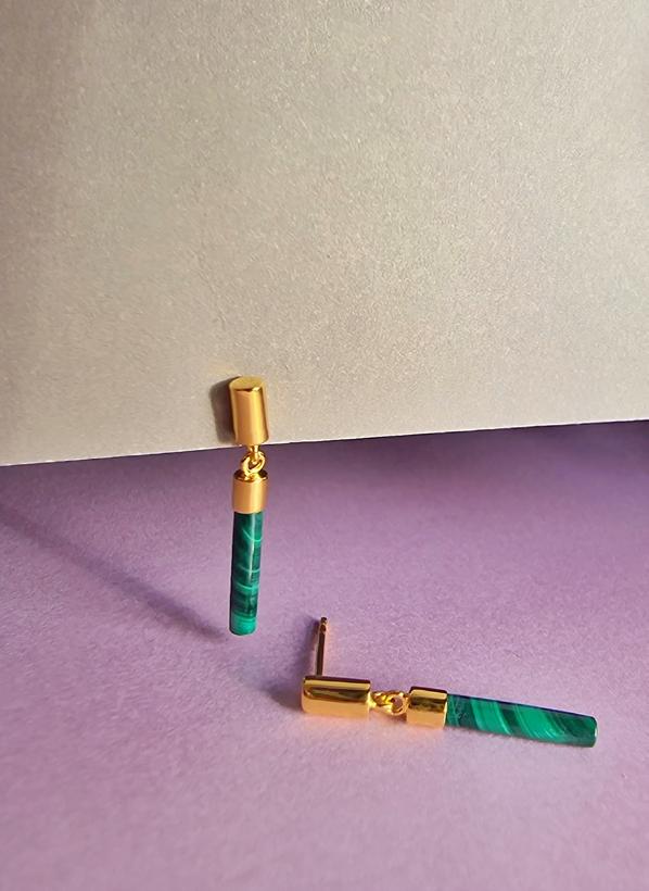 Material: Handmade with 18kt gold plated on Sterling Silver (925, hypoallergenic), and a solid malachite bar.
