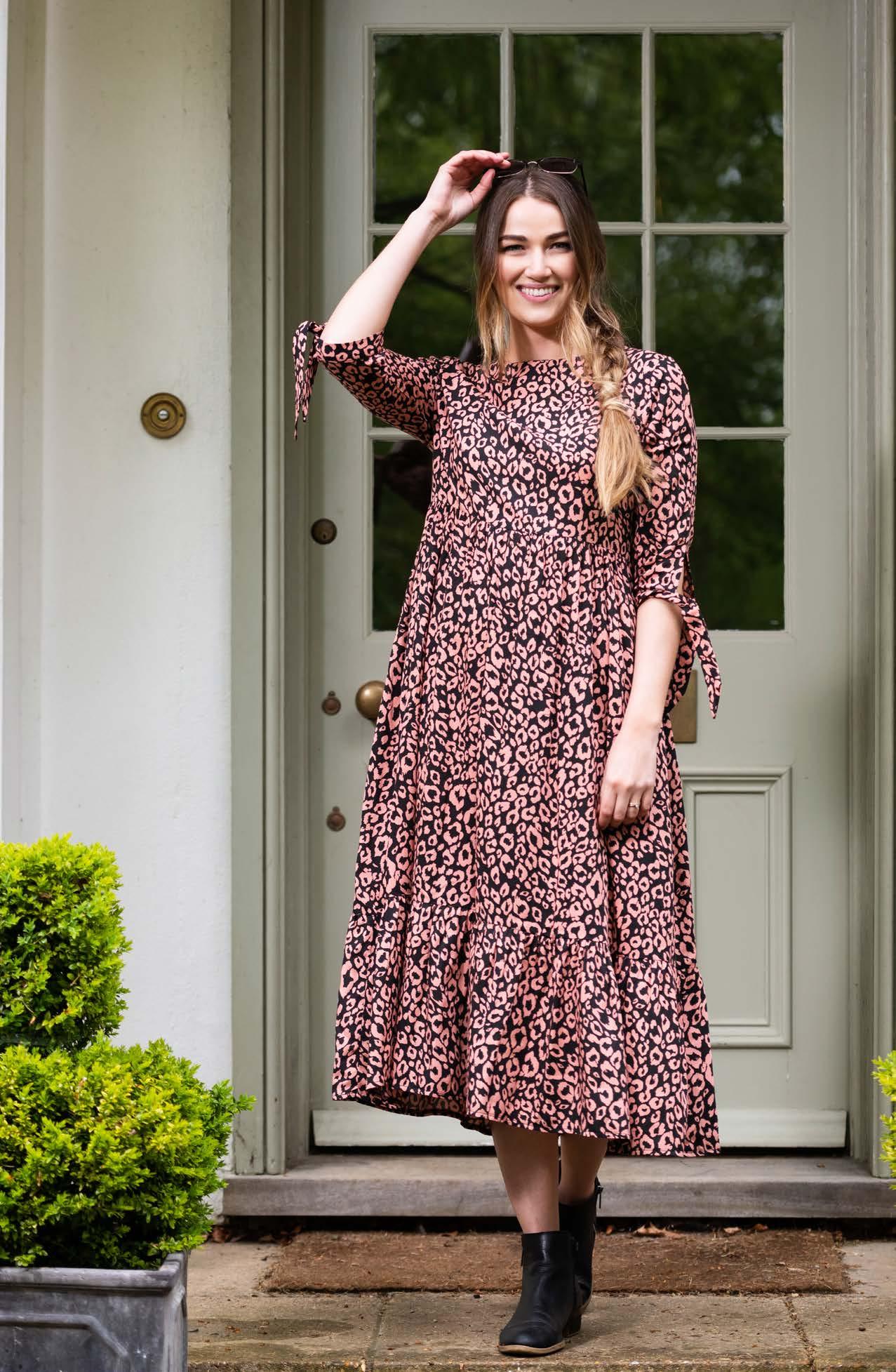 Tie-Sleeve Midi Dress in Pink Animal - £35