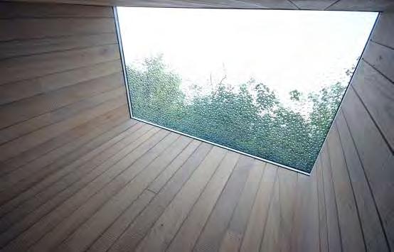 A sprinkling of woodland light is cast onto the internal surfaces of the Garden Studio, from discreet rooflights above. These also frame high level views of the trees overhead.