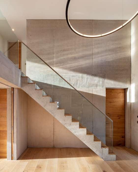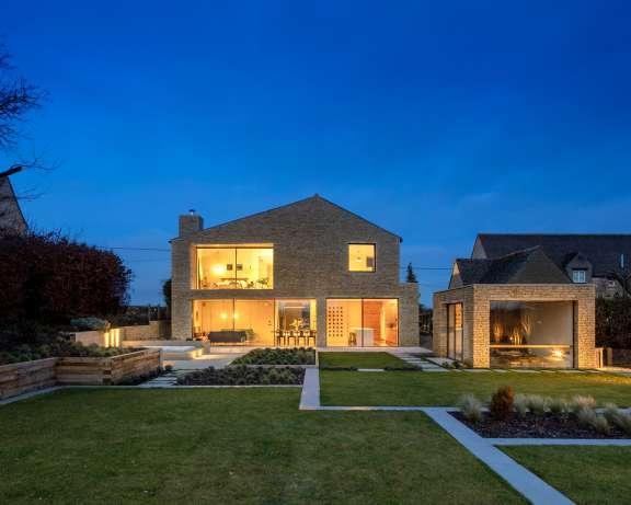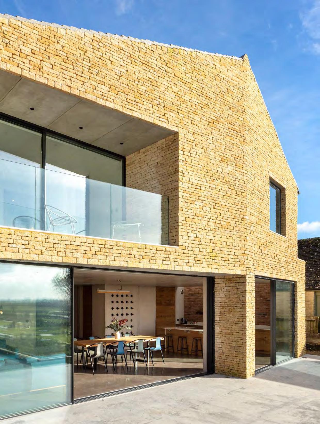 The house consists of two main materials: Cotswold stone on the exterior, and a raw exposed in-situ concrete on the interior.