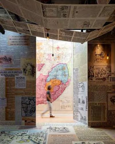 The Story of Emily Museum in the village of St Ive, north Cornwall, also completed in 2024. This tells the little-known story of feminist and humanitarian Emily Hobhouse, who spoke out against the UK’s use of concentration camps in South Africa during the Boer War. Stonewood Design’s work here spans across several buildings, including new build staff accommodation and visitor facilities in a robust Cornish vernacular executed with a modern twist. The exhibition on the war itself is housed in a new museum building with a very different character – a windowless façade of ribbed zinc that deliberately contrasts with the more traditional character of the visitor facilities and the nearby listed Rectory where Hobhouse grew up.