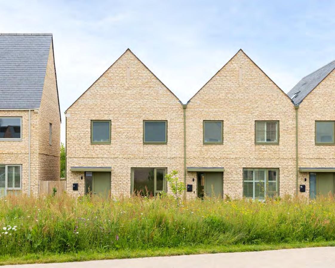 The development has its own identity and sense of community. This is focussed around a new village green at the heart of the scheme, onto which a terrace of houses have their frontages.