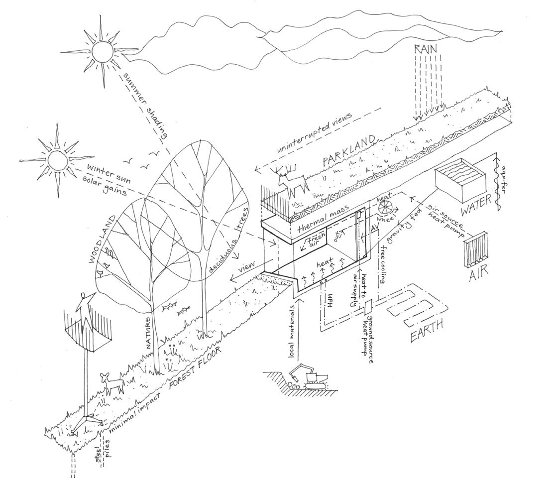 Between architect and client, concepts were discussed such as creating a “ha-ha”, or natural forms of shelter on the site.