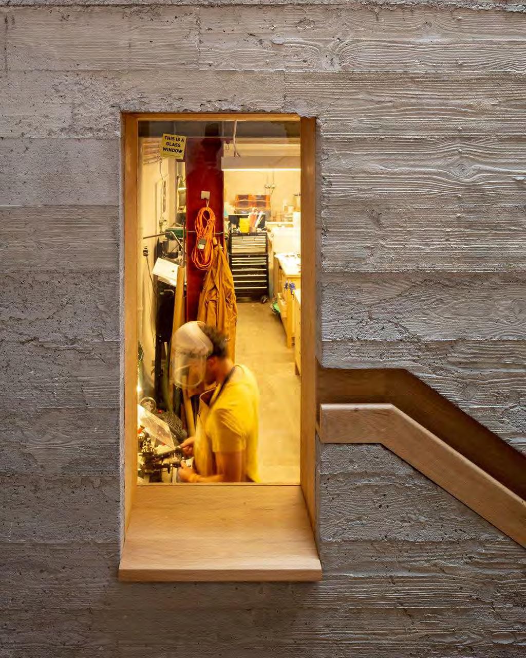 There is an opportunity to view the interior of the Barn from the House, and celebrate the tough, axial sense of space within the Barn.