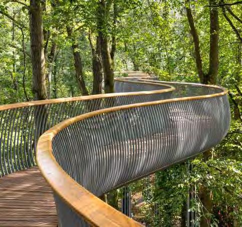 From a distance, the only hint of a built structure is a balustrade that runs along the edge of the museum’s grassed roof, where deer and other wildlife roam freely. From here, a treetop walkway, known as the Viper, gently snakes down into the woodland, fully immersing the visitor in nature.