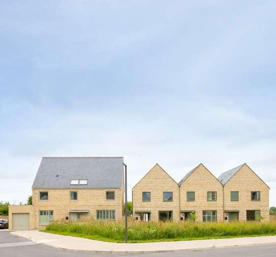 The houses blend a mix of materials of brick, stone and render, in keeping with the context of the village.