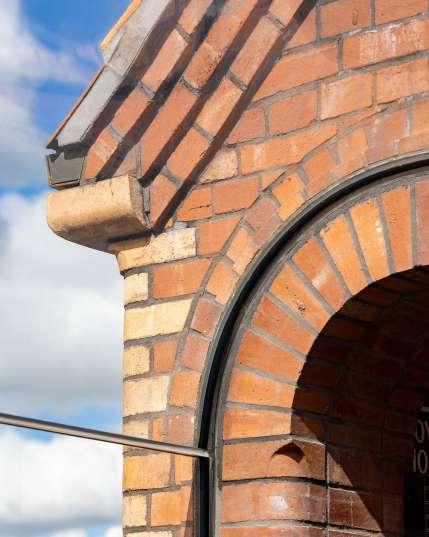 Brickwork is a combination of recycled local bricks and imperial-sized, handmade new bricks akin to that of the original building, and with similar bullnose details. The roof is clad in locally sourced roof tiles while new thermally broken windows were inspired by the creamery’s Crittall originals.