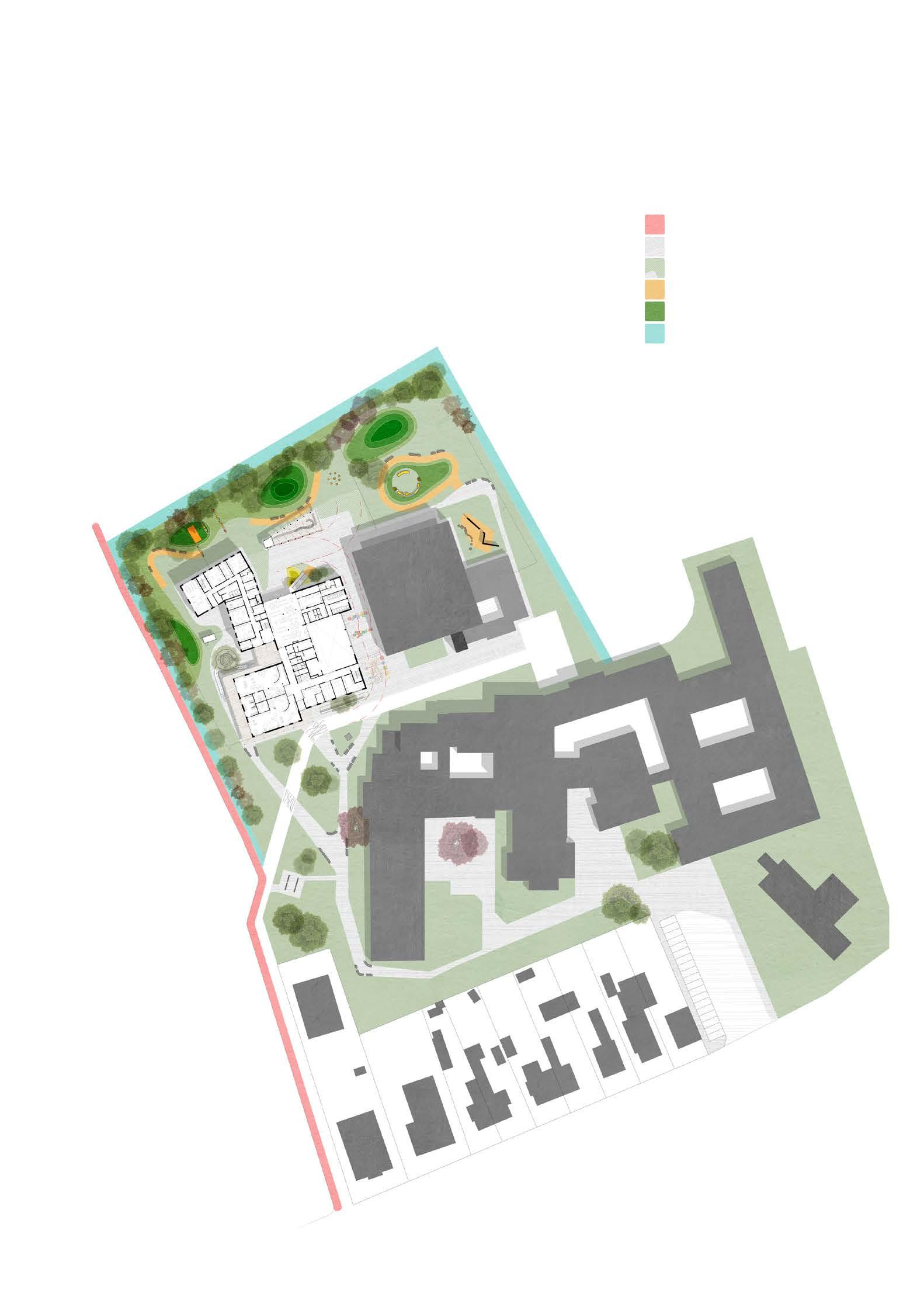 Part of the objectives of the project were differentiate areas according to mobility and deseases of the patients. This was achieved by the intagrated design of landsacpe and architecture.