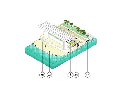 Given the professional experience in Taiwan, we were asked to nd a solution for a long dismissed railway, centrally placed in the city, and elevated on a dyke, that was recently replaced by an elevated railway. The linear area, and its strategic position gave the idea for a pilot project of a green infrstructure line, for pedestrians and bikers, together with a multifunctional park, that would give sport elds, leisure green areas, and public spaces for market and gathering
