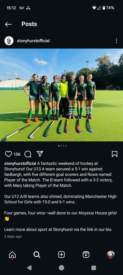A fantastic weekend of hockey at Stonyhurst. Our U13 A team secured a 5-1 win against Sedbergh, with five different goal scorers and Rosie named Player of the Match. The B team followed with a 3-2 victory, with Mary taking player of the Match.