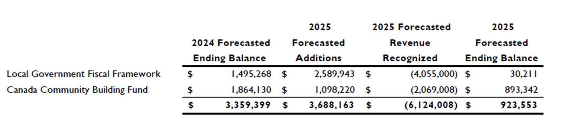 The Canada Community Building Fund is a multi-year grant program that provides funding annually but also allow the funding to be applied to projects over five years. Funding to be used in future years is recorded as deferred revenue. As required by the grant programs, interest earned by the Town is allocated to the deferred balance until the funds are expended.