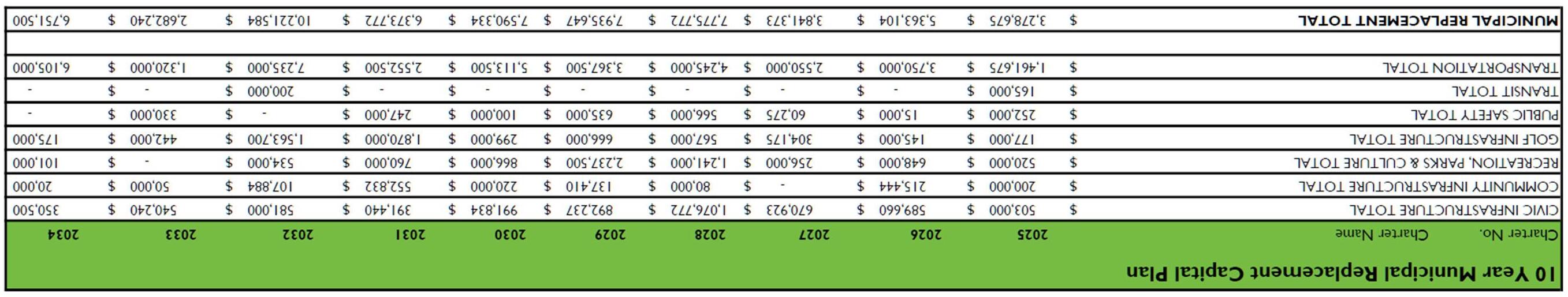 While the Accumulated Surplus – Restricted (Reserve) policy (C-FS-055) states reserves will be repaid with interest (generally over a period of five (5) years or less), a repayment plan to the Legacy reserve for the three lots purchased in 2018 has been included in the Corporate Plan of $38,936 over a span of 20 years. The Land (School) Reserve funds within the Capital Project Reserves is the commitment for Stony Central School lands purchased from a developer that is being paid through 2029.