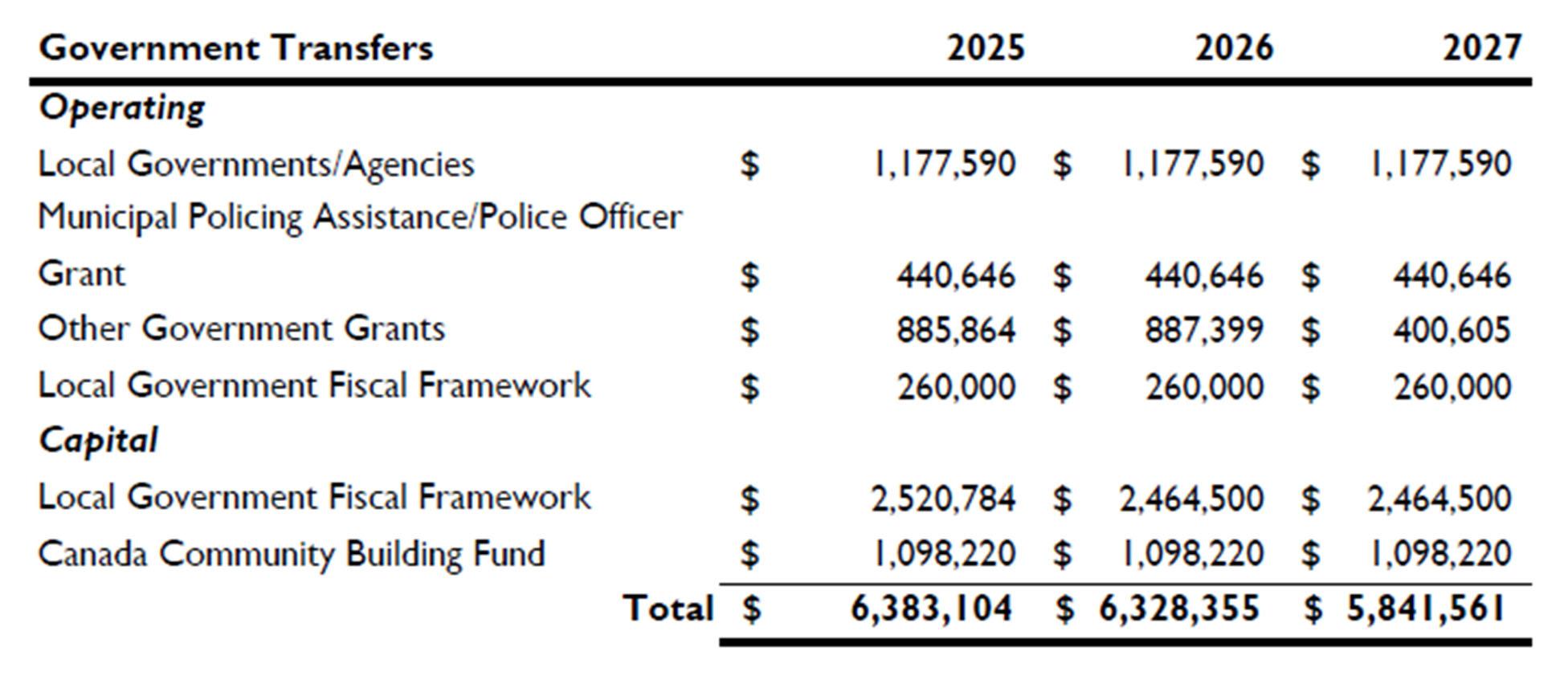 b. The Canada Community Building Fund provides an allocation based on each municipality’s official population as recorded by Alberta Municipal Affairs. This grant program is based on a nonmatching basis strictly for capital infrastructure.