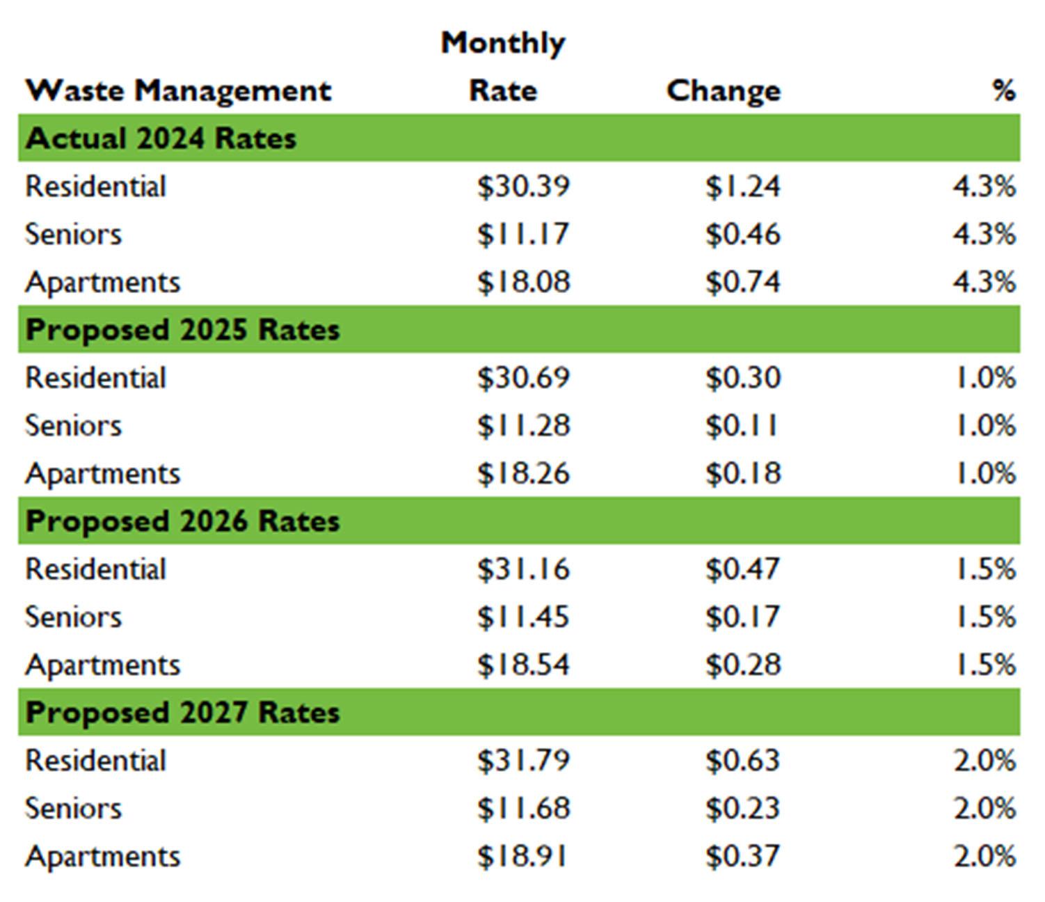 The Town entered into an agreement in April 2022 for the collection and hauling of garbage, compost and recyclable materials, which expires in March 2025. The estimated cost of these services for 2025 is approximately $1,488,576. The waste management contract is up for renewal in 2025; therefore, the impact may vary from the amount estimated. In 2022, the Town extended its contract for safety codes services for three years at an estimated cost of $25,000 per year. In 2020 the Town entered into an agreement for the operation of a local transit service. The estimated cost of this contract in 2025 is approximately $444,000. It is anticipated the Town will be entering into a Cemetery operation contract in 2026, subsequent to construction.