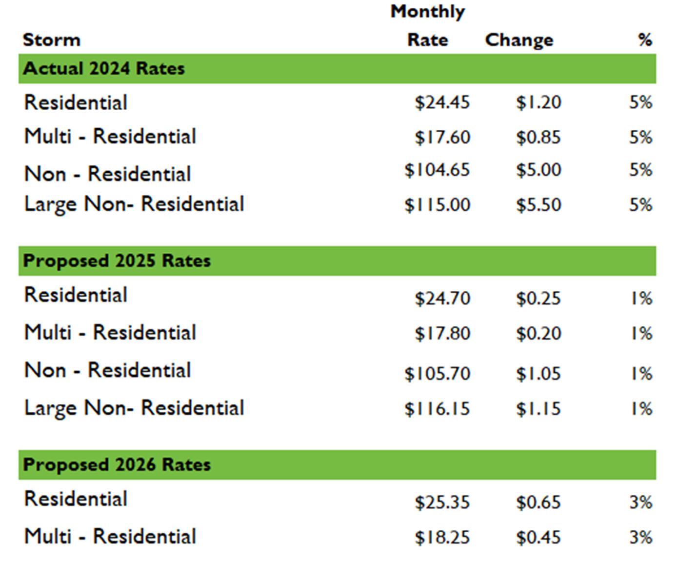 Offsite levy rates are paid by developers and are set under the Offsite Levy Bylaw (2648/D&P/21).